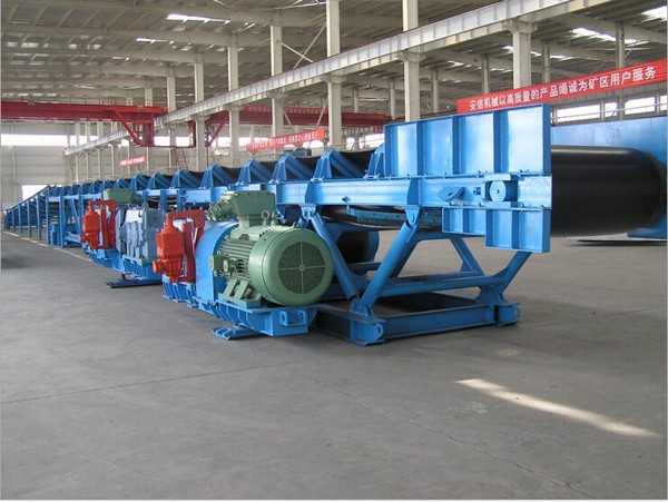1、除轉載機與尾機有一搭接長度可供工作面快速推進外,通過收放膠帶裝置和貯帶裝置可使機身得到伸長和縮短,從而能較有效地提高順槽運輸能力,加快回采和掘進速度。